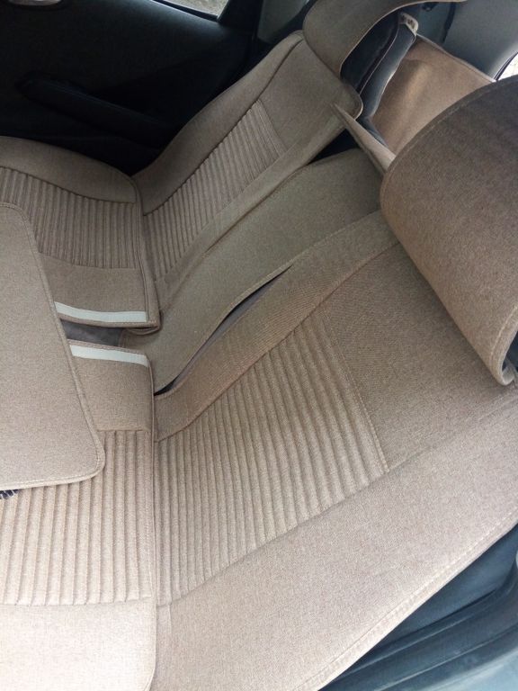 Комплект чехлов на сидения авто бежевого цвета, изготовленный из льна, обеспечивают свободную циркуляцию воздуха в сидении автомобиля и незаменимы в любое время года.