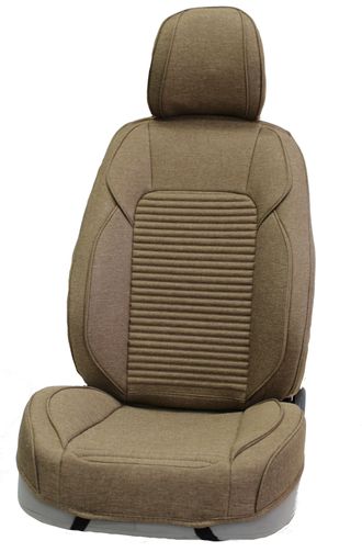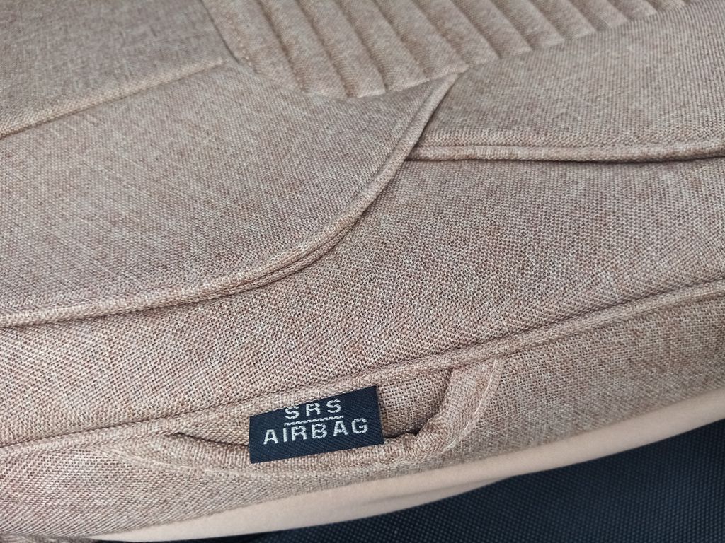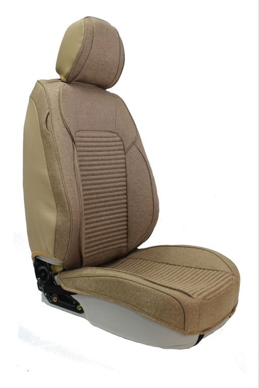 Комплект чехлов на передние сидения авто бежевого цвета, изготовленный из льна, обеспечивают свободную циркуляцию воздуха в сидении автомобиля и незаменимы в любое время года.