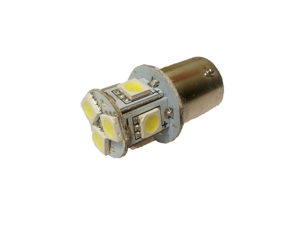 Автомобильная светодиодная лампа на 12 вольта c цоколем 1156 - PY21W - P21W - S25 - BA15s c 8-ю светодиодами SMD5050. Светодиодная лампа для грузовых автомобилей и автобусов с напряжением питания на 12 вольта. Светодиодные лампы установленные в поворотники или стоп-сигналы делают ваши маневры заметнее, к тому же светодиоды не чувствительны к частому включению/выключению и прослужат гораздо дольше ламп накаливания.