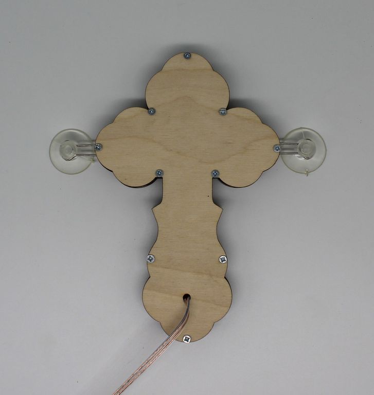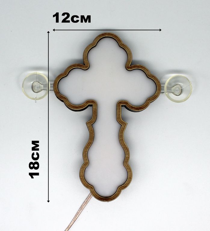 Крест православный, светодиодный 24V, с белым свечением, деревянный, на присосках.