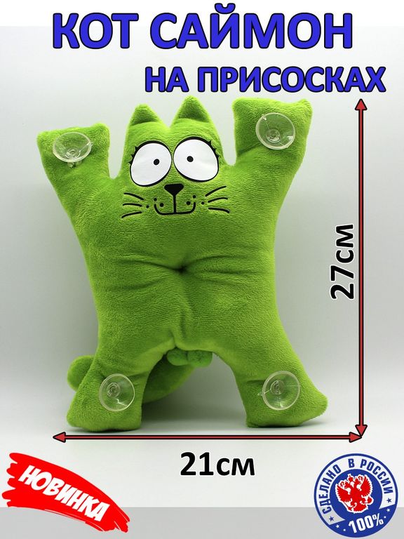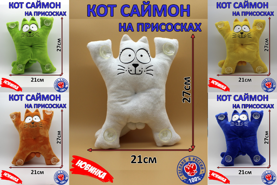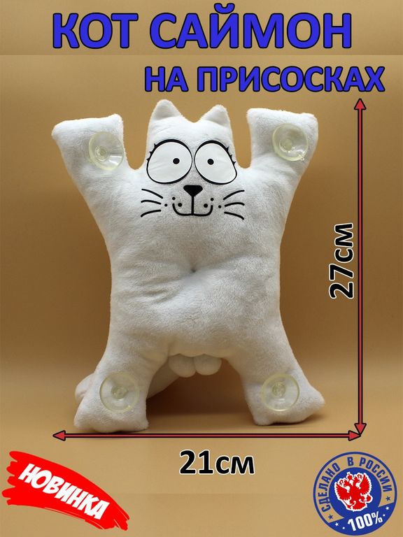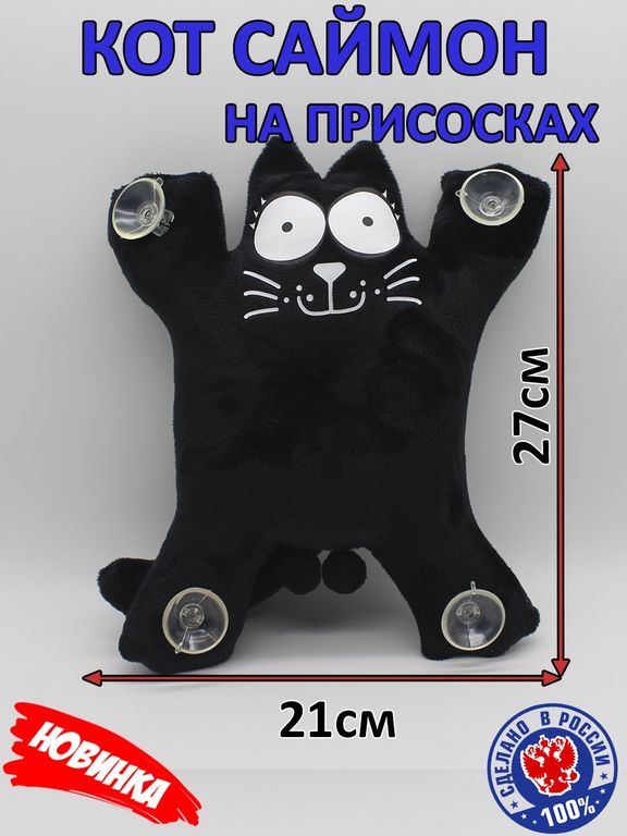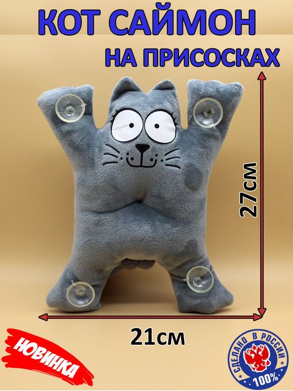 Забавная мягкая игрушка на присосках для авто - Кот Саймон.