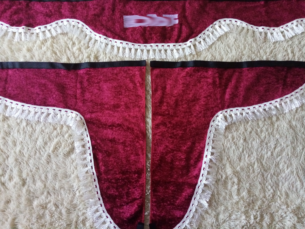 Длина лобовой шторки -220 см. Высота 20 см. (без учета кисточек)
