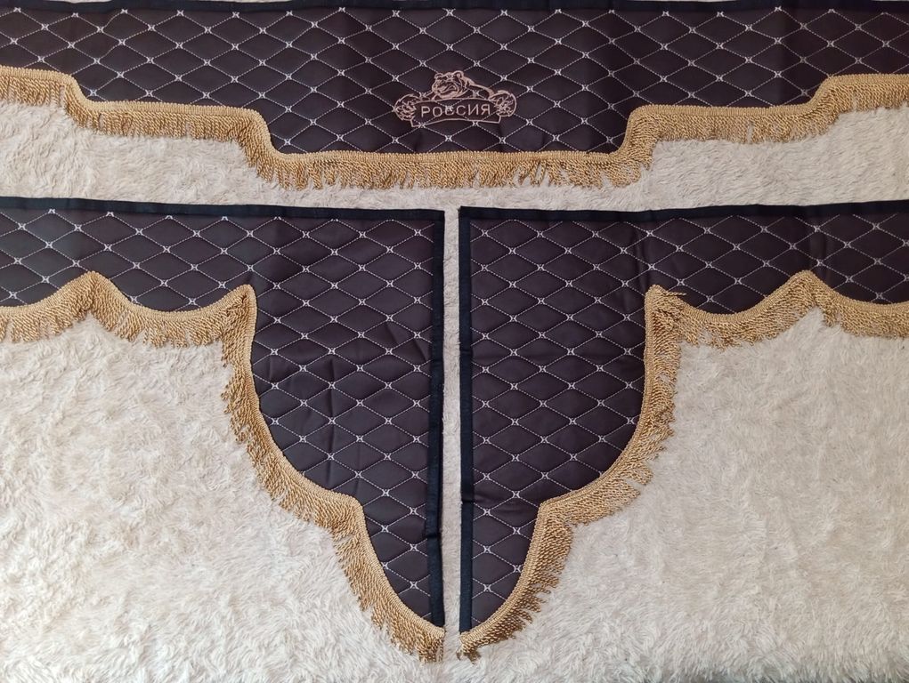Комплект защитит от слепящего солнца, украсит салон и создаст уютную обстановку, которая важна для комфортной работы водителя. Стеганый ламбрекен с вышивкой сшит из качественного и долговечного материала, который, при необходимости, можно легко почистить.