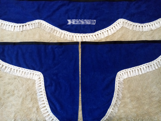 В комплект входит ламбрекен на лобовое стекло, две косынки (шторки) на боковые стекла, двусторонняя лента-липучка для крепления.