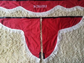 В комплект входит ламбрекен на лобовое стекло, две косынки (шторки) на боковые стекла, двусторонняя лента-липучка для крепления.