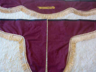 В комплект входит ламбрекен на лобовое стекло, две косынки (шторки) на боковые стекла, двусторонняя лента-липучка для крепления.