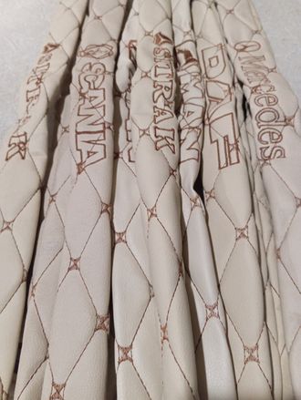 Накладки на ремни сшиты из стеганной высококачественной эко-кожи с вышивкой логотипа авто.