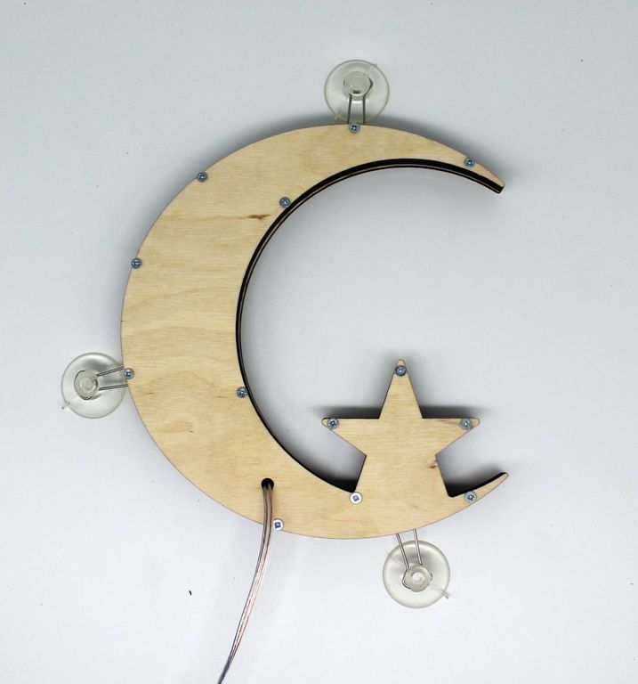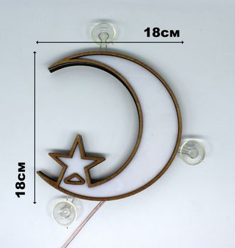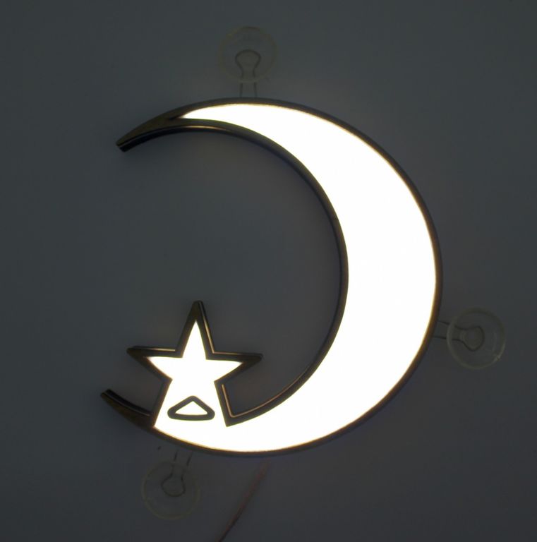 Полумесяц мусульманский, светодиодный 24V, с белым свечением, деревянный, на присосках.