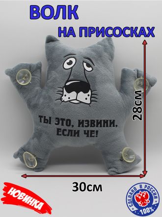 Забавная мягкая игрушка на присосках для авто - ВОЛК с надписью ТЫ ЭТО, ИЗВИНИ, ЕСЛИ ЧЕ!